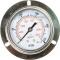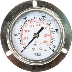 Pressure gauge, instrument for measuring the condition of a fluid (liquid or gas) that is specified by the force that the fluid would exert, when at rest, on a unit area, such as pounds per square inch or newtons per square centimetre.