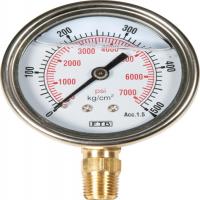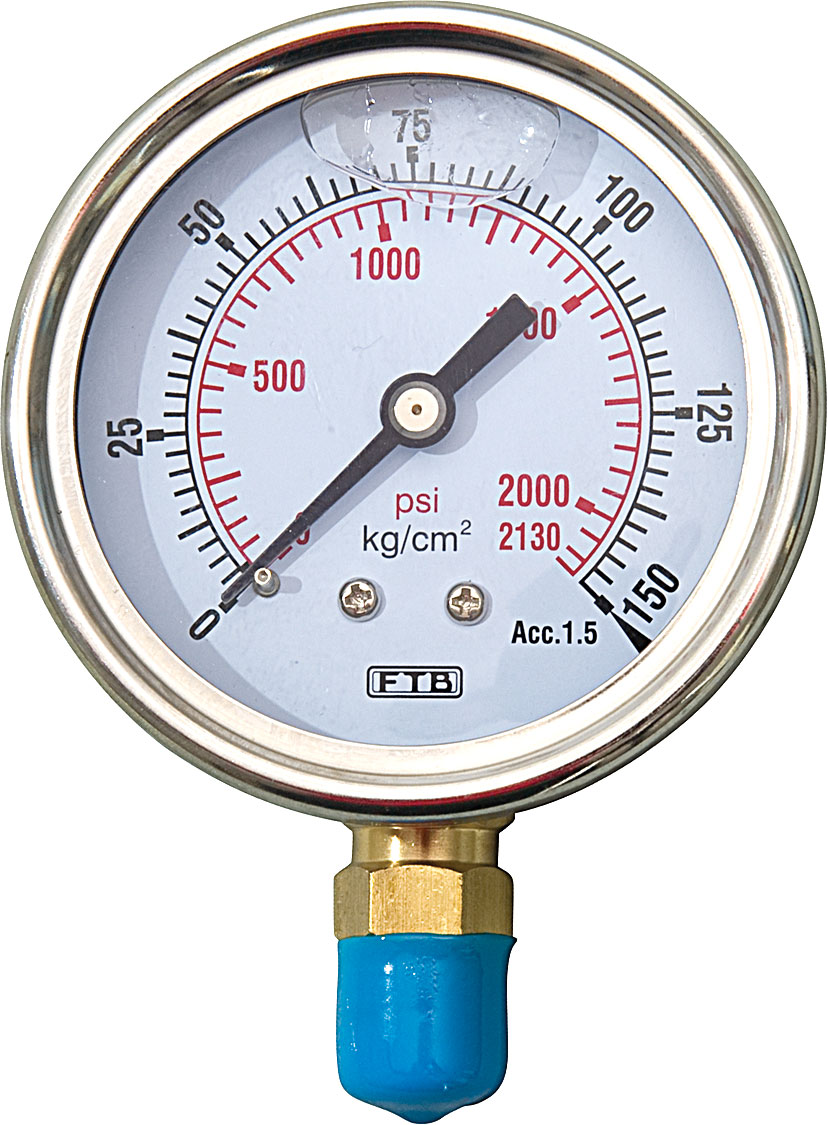 Pressure gauge, instrument for measuring the condition of a fluid (liquid or gas) that is specified by the force that the fluid would exert, when at rest, on a unit area, such as pounds per square inch or newtons per square centimetre.
